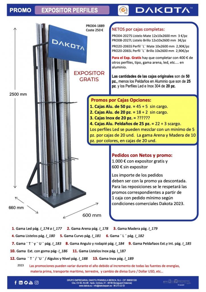 Los expositores (con el material expuesto) se envían sin coste al realizar un pedido de implantación de los productos del expositor